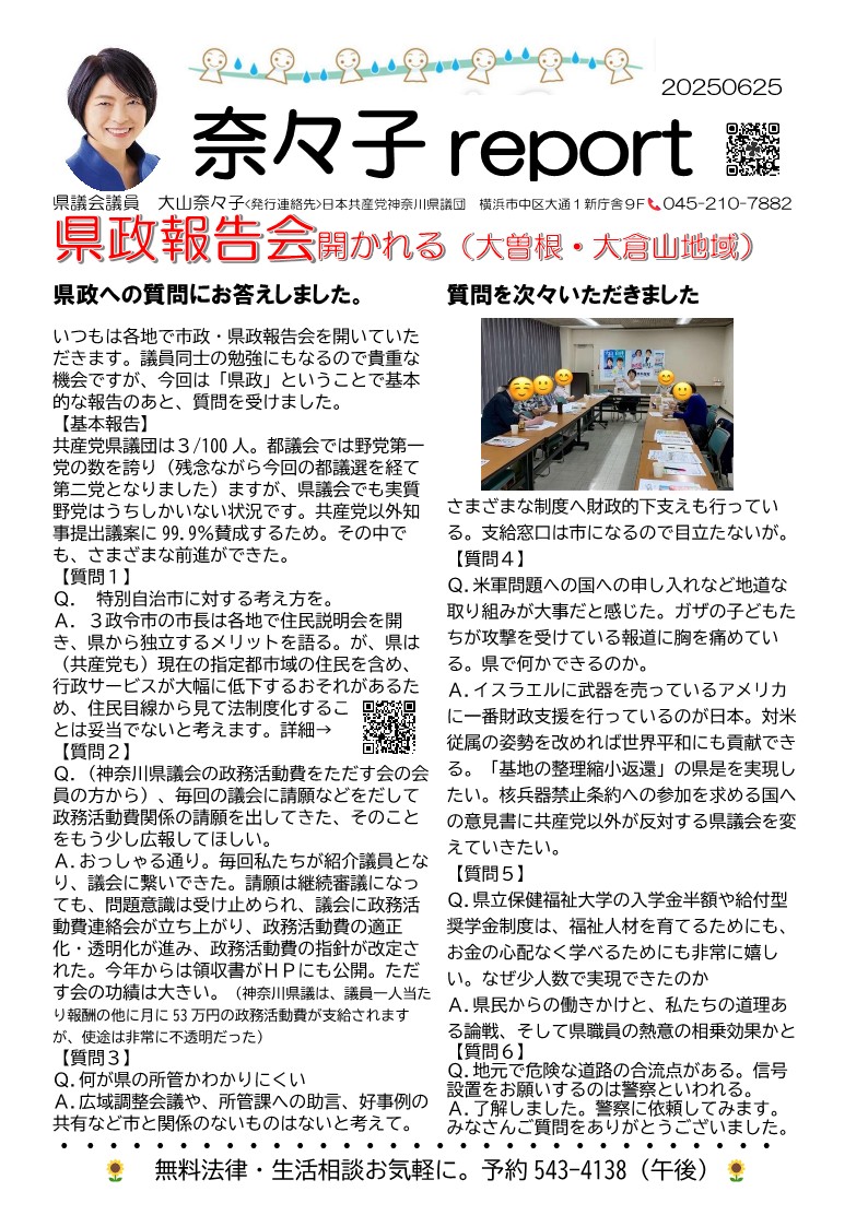 【県議会報告LETTER秋号】県民の命を守る質問 議会で...