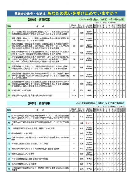 2025年第3回定例会(前半) 請願・陳情審査結果、意見...