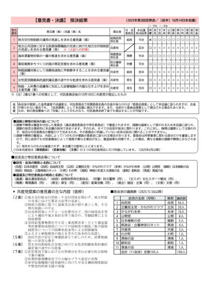 2025年第3回定例会(前半) 請願・陳情審査結果、意見書(案)採決結果