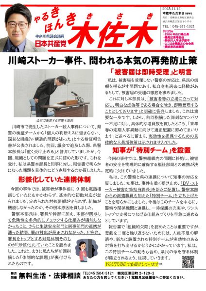 NEW!【やるき ほんき 木佐木】 川崎ストーカー事件、問われる本気の再発防止策