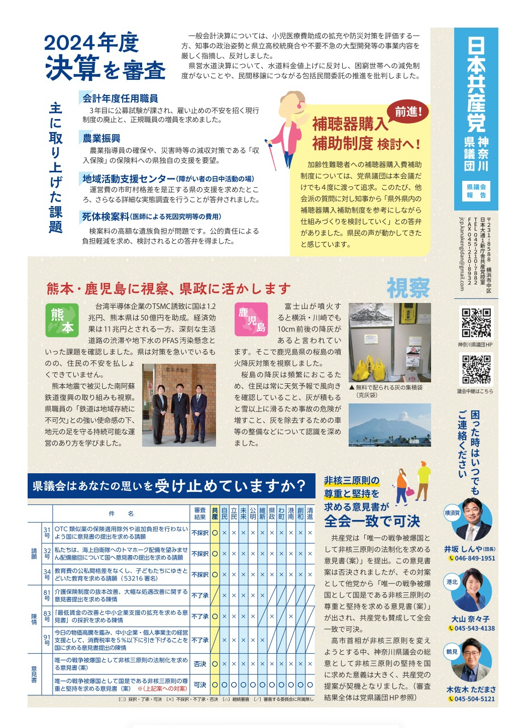 ◆神奈川県のお金の使い道・施策をチェック ・不安定な会計年度任用職員の制度はやめて正規に・農業指導員確保や「収入保険」保険料の補助を県で・地位活動支援センター(障がい者の日中活動の場)運営に支援を・高額な死体検案料(医師による死亡究明等の費用)の遺族負担軽減を
