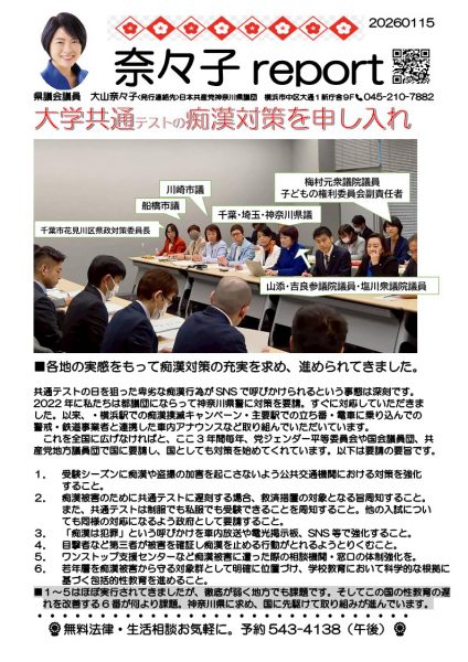 ◆主な項目・公共交通機関の対策強化・被害によって共通テストを遅刻する場合の救済措置(試験時間の繰り下げや別日への振り替え)の周知・「痴漢は犯罪」等の呼びかけ強化・第三者による働きかけ(アクティブバイスタンダー)の啓発・ワンストップセンター等相談窓口の強化・包括的性教育の推進等々