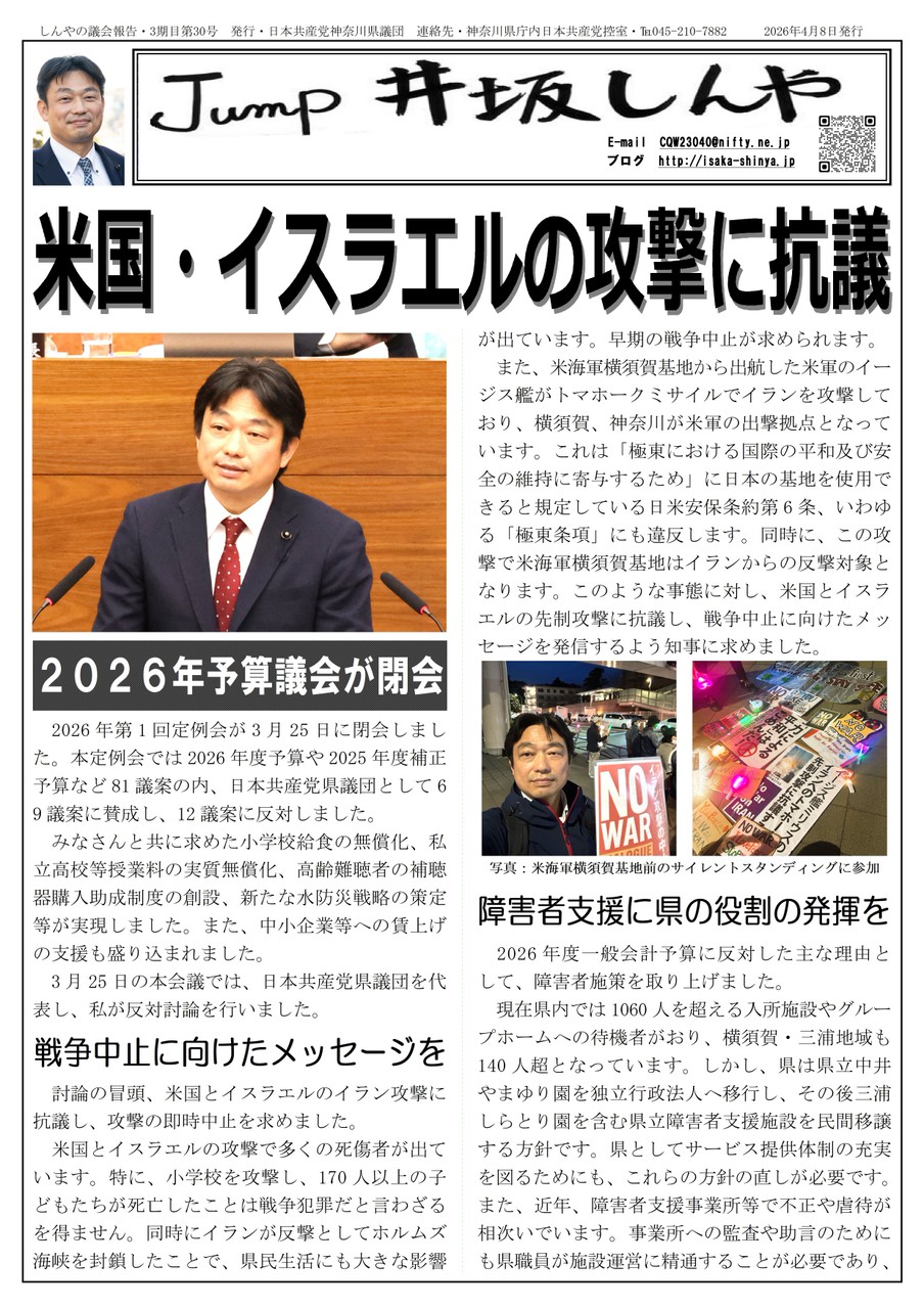 ◆戦争中止に向けたメッセージを横須賀や神奈川が米軍の出撃拠点となっている